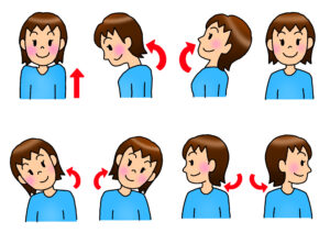 首を前後左右に傾けたり、回したり、首をすくめたりしてみましょう。