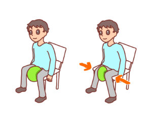 例えば、イスに座って両膝の間にテニスボールを挟んでボールを潰すつもりで内ももにしっかりと力をこめましょう。