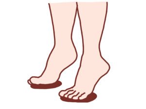 ・かかとをつけずに歩きましょう。